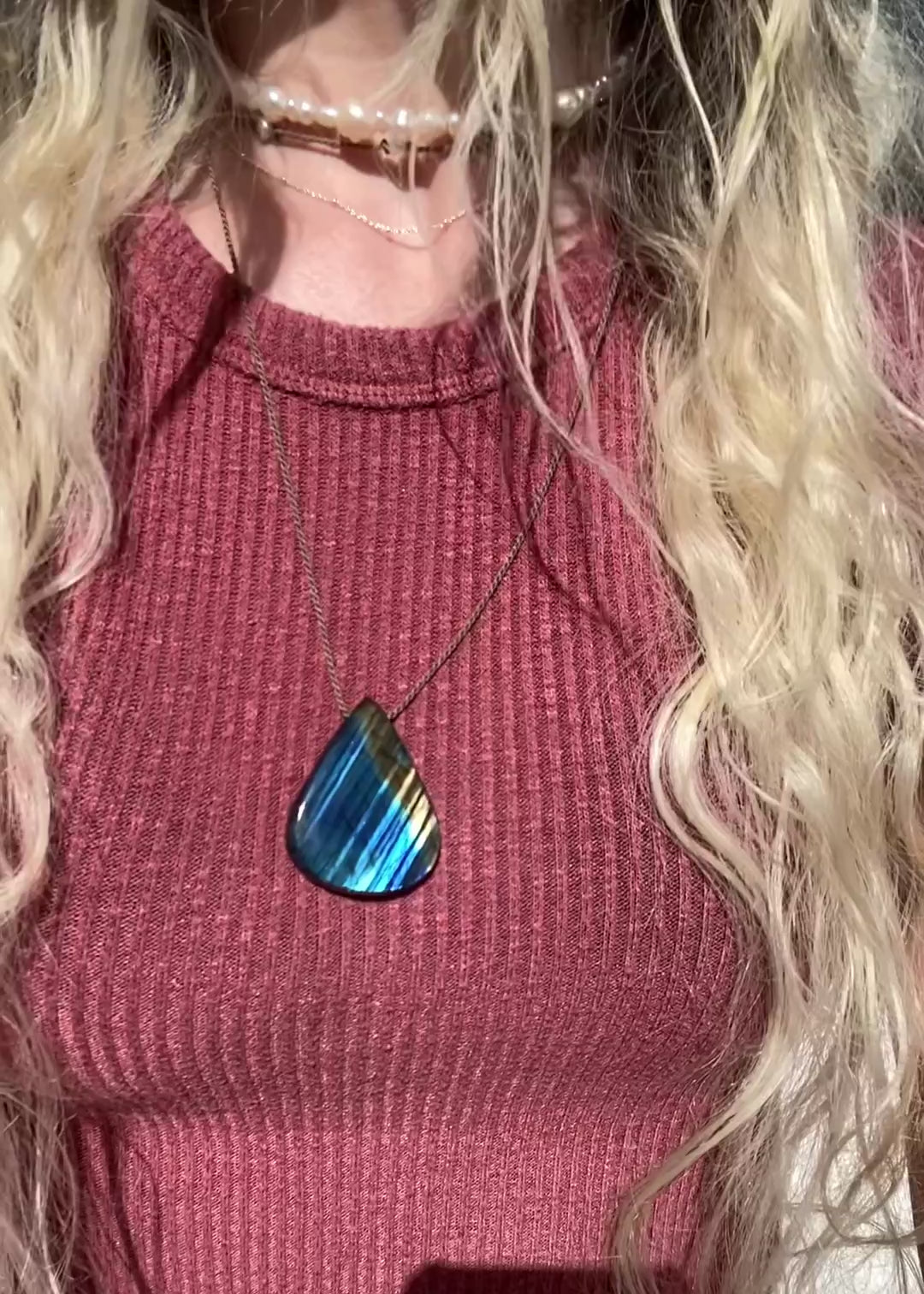 Labradorite isn’t just a stone - it’s a flash of magic you’ll feel every time you wear it. Known as the stone of transformation and inner strength, labradorite has been one of our most-loved pendants for years.