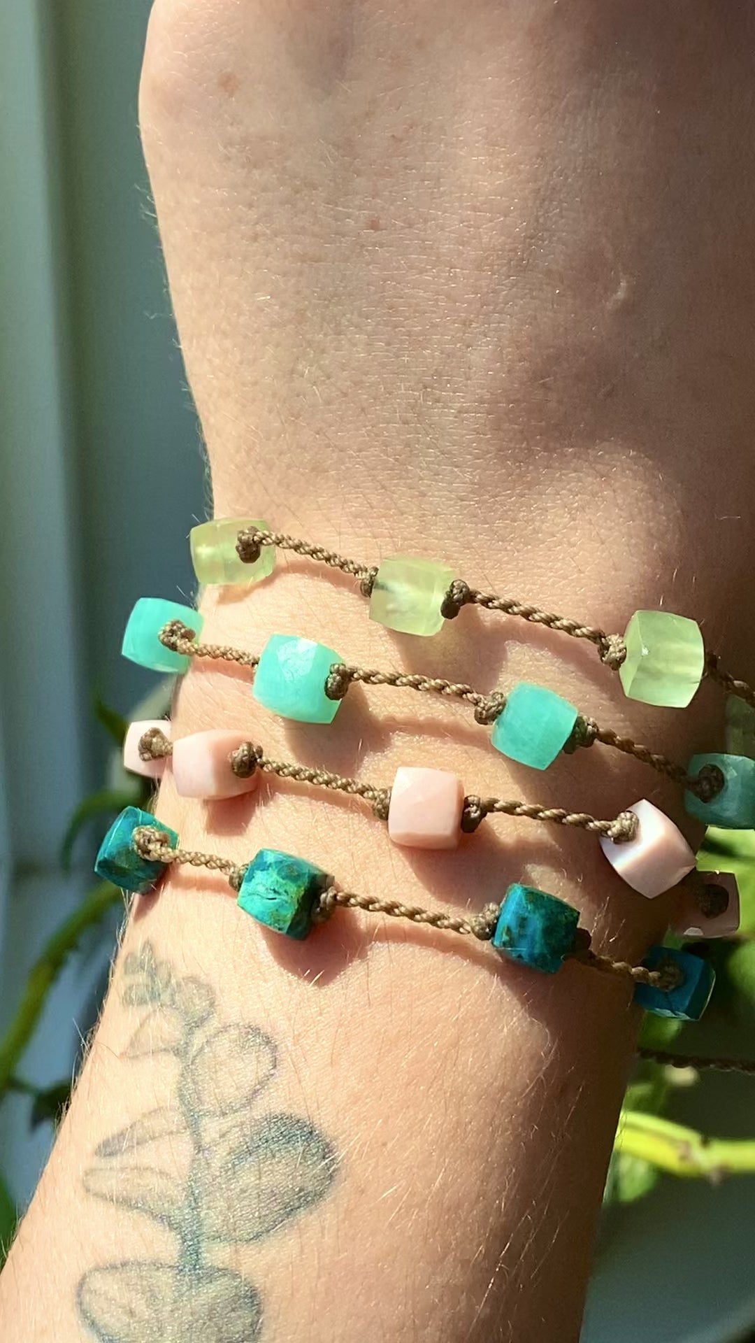 Amazonite, Prehnite, Chrysocolla & Pink Opal Cube Bracelets